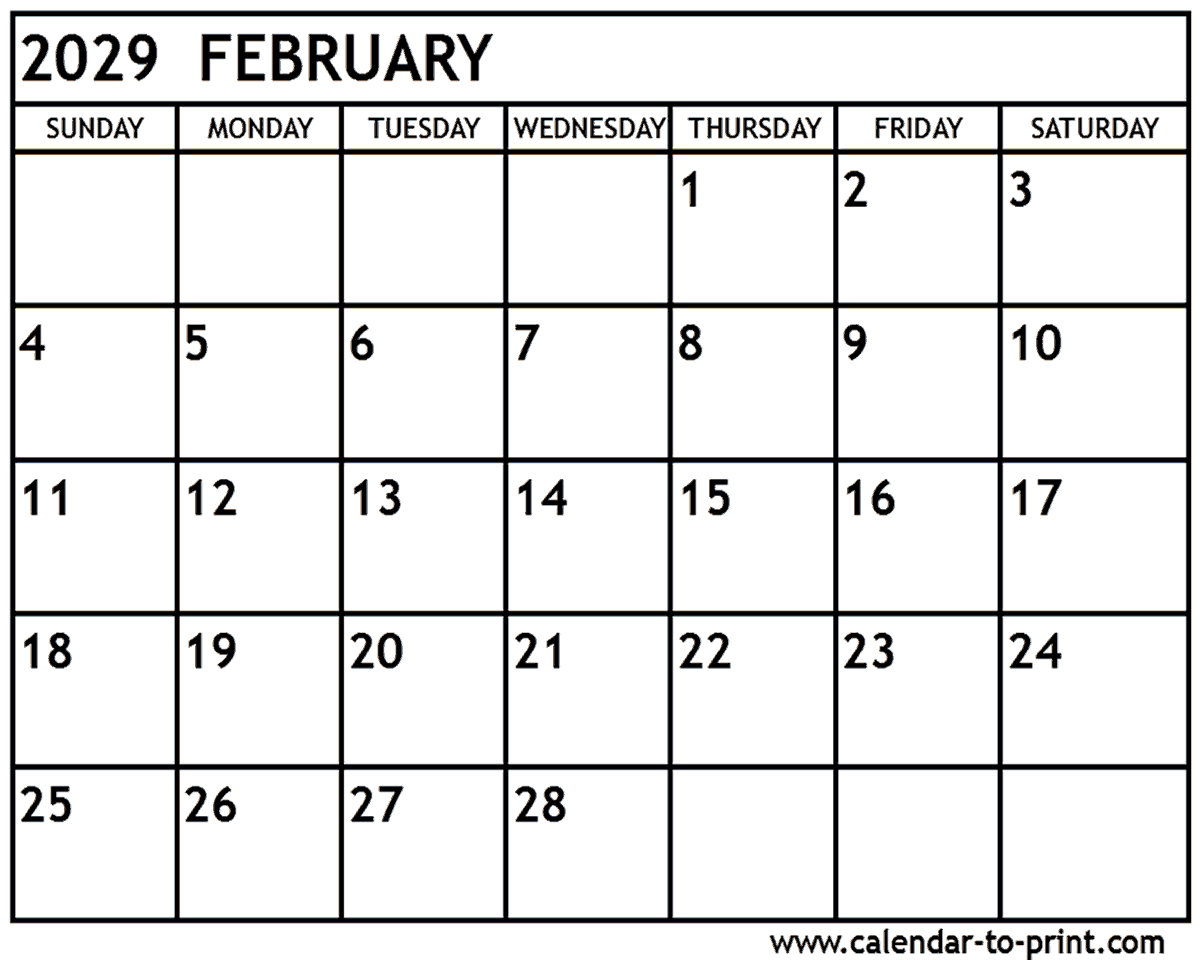 February 2029 calendar is a plain printable calendar. Our calendars are FREE to use and are available as PDF calendar and GIF image calendar. This February 2029 calendar can be printed on an A4 size paper. Print the calendar and mark the important dates, events, holidays, etc. for February on it. Good Luck !