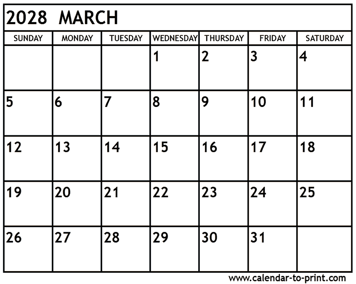 March 2028 calendar is a plain printable calendar. Our calendars are FREE to use and are available as PDF calendar and GIF image calendar. This March 2028 calendar can be printed on an A4 size paper. Print the calendar and mark the important dates, events, holidays, etc. for March on it. Good Luck !