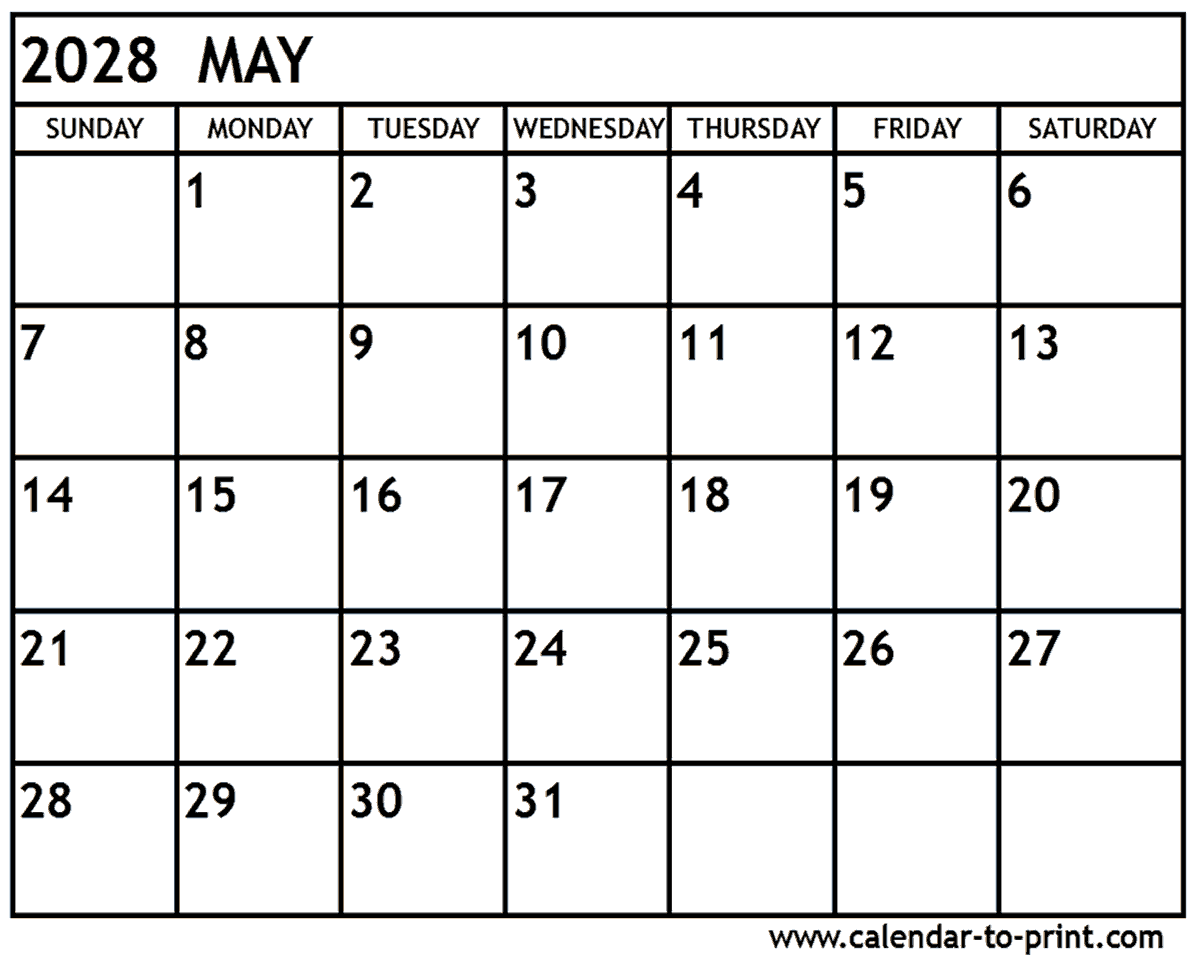 May 2028 Calendar Printable