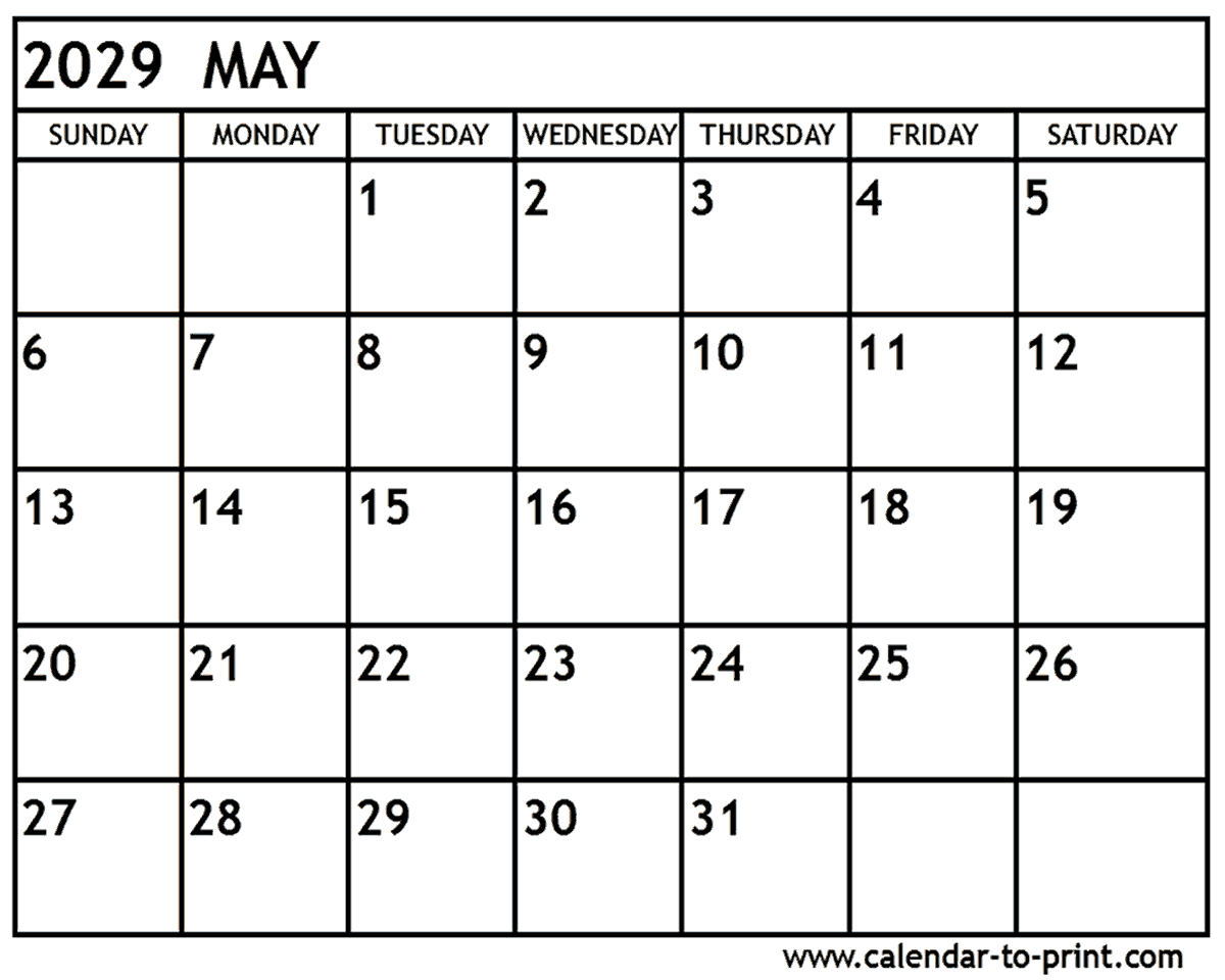 May 2029 Calendar Printable