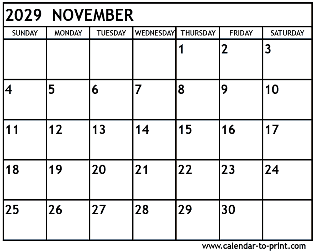 November 2029 Calendar Printable