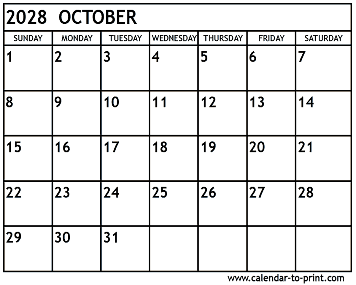 October 2028 Calendar Printable